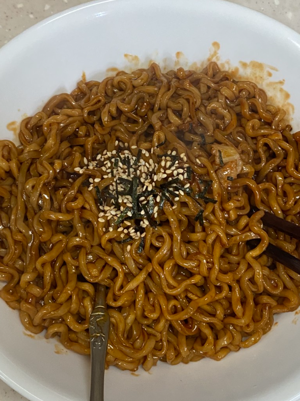 1. 불닭볶음면 + 짜장게티 = 짜파구리 맛