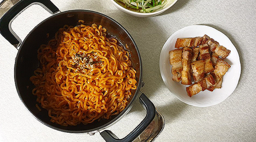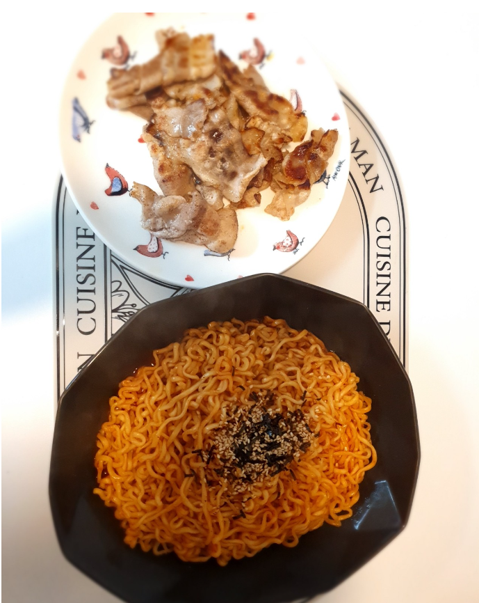 불닭볶음면이 아니라 어떤 조합이라도 삼겹살은 진리 입니다.