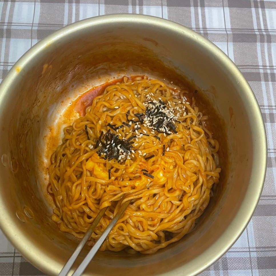 불닭볶음면 컵라면을 사서 일반적으로 만들어