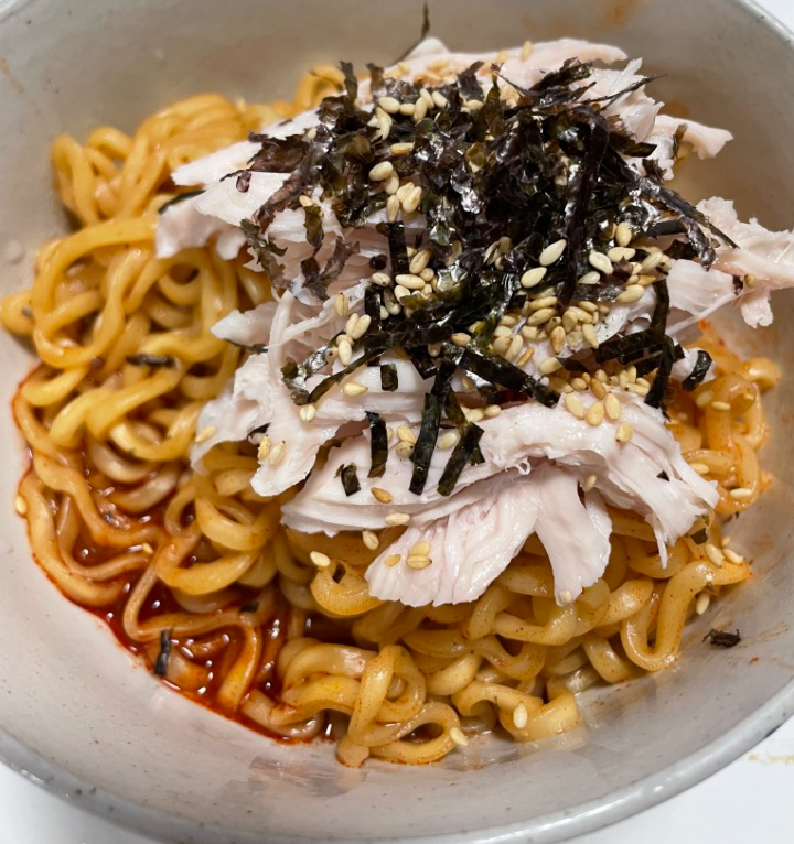 7. 불닭볶음면 + 밥 + 닭가슴살 = 불닭리조또