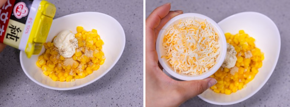 옥수수와 치즈를 넣으면 콘치즈가 됩니다.