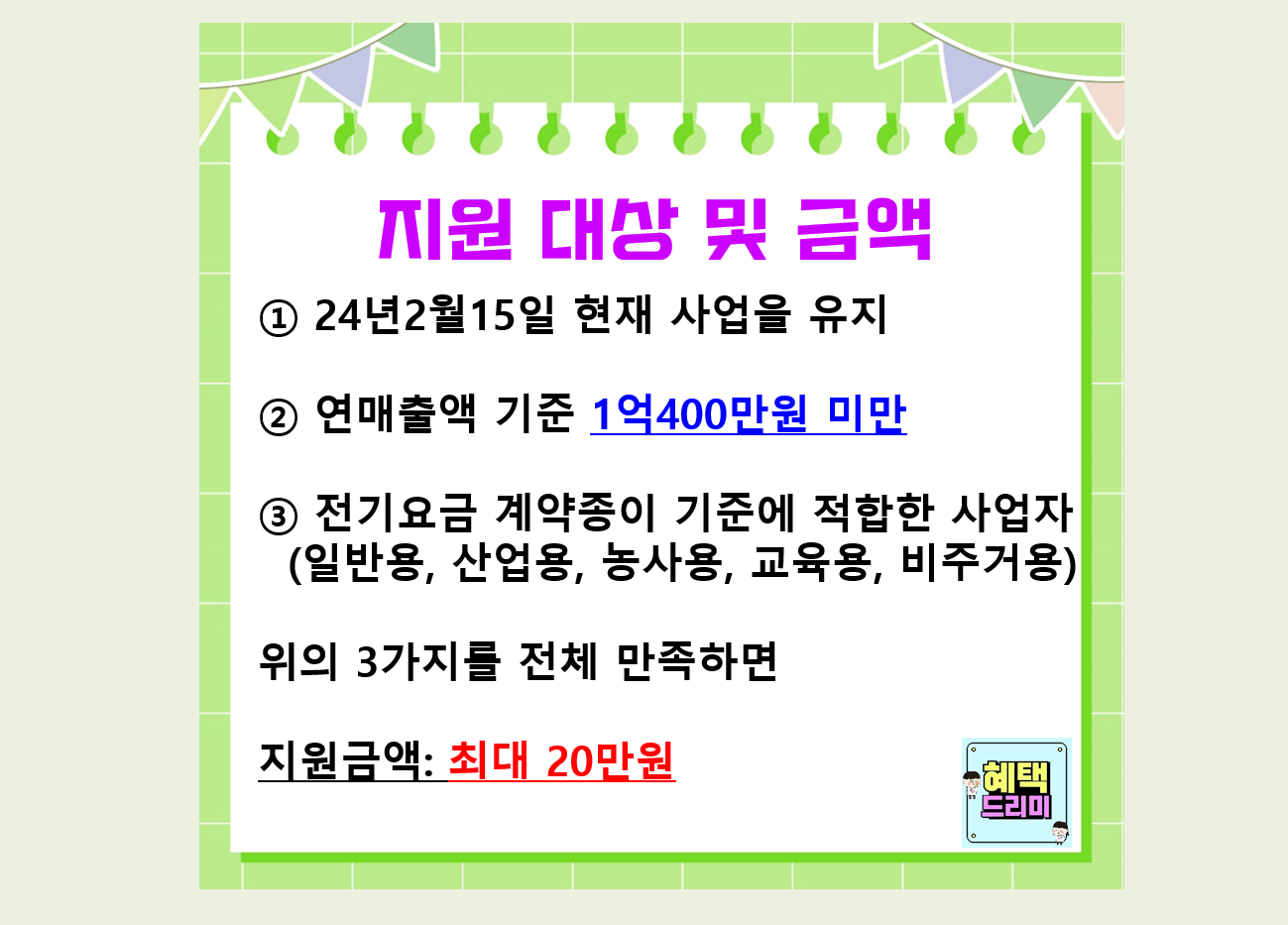 소상공인 전기요금 특별지원의 대상이 확대 되었다는 좋은 소식이 있습니다.