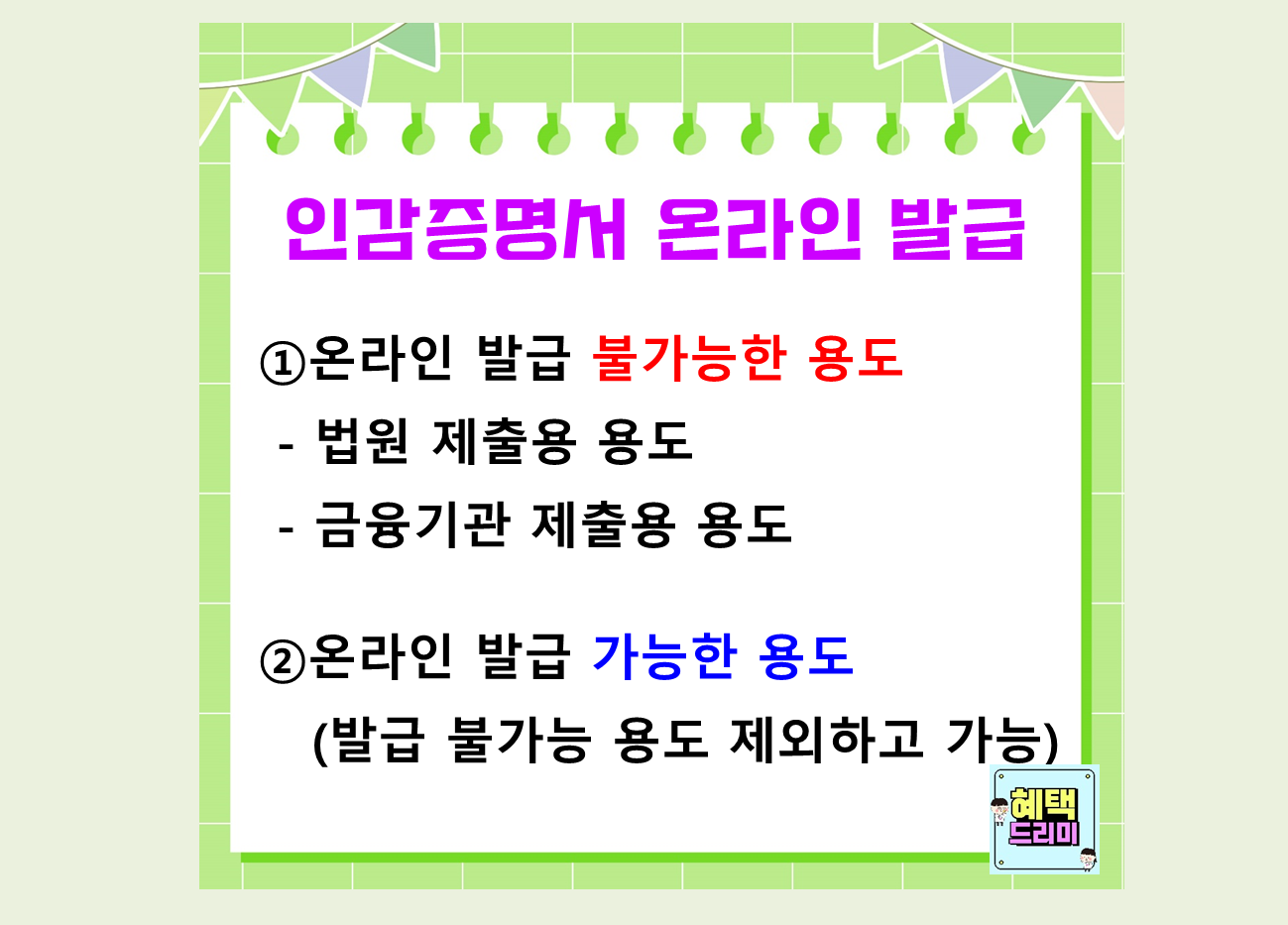 1)의 온라인 발급 불가능한 용도를 제외한 모든 용도가 온라인 발급 가능 합니다.