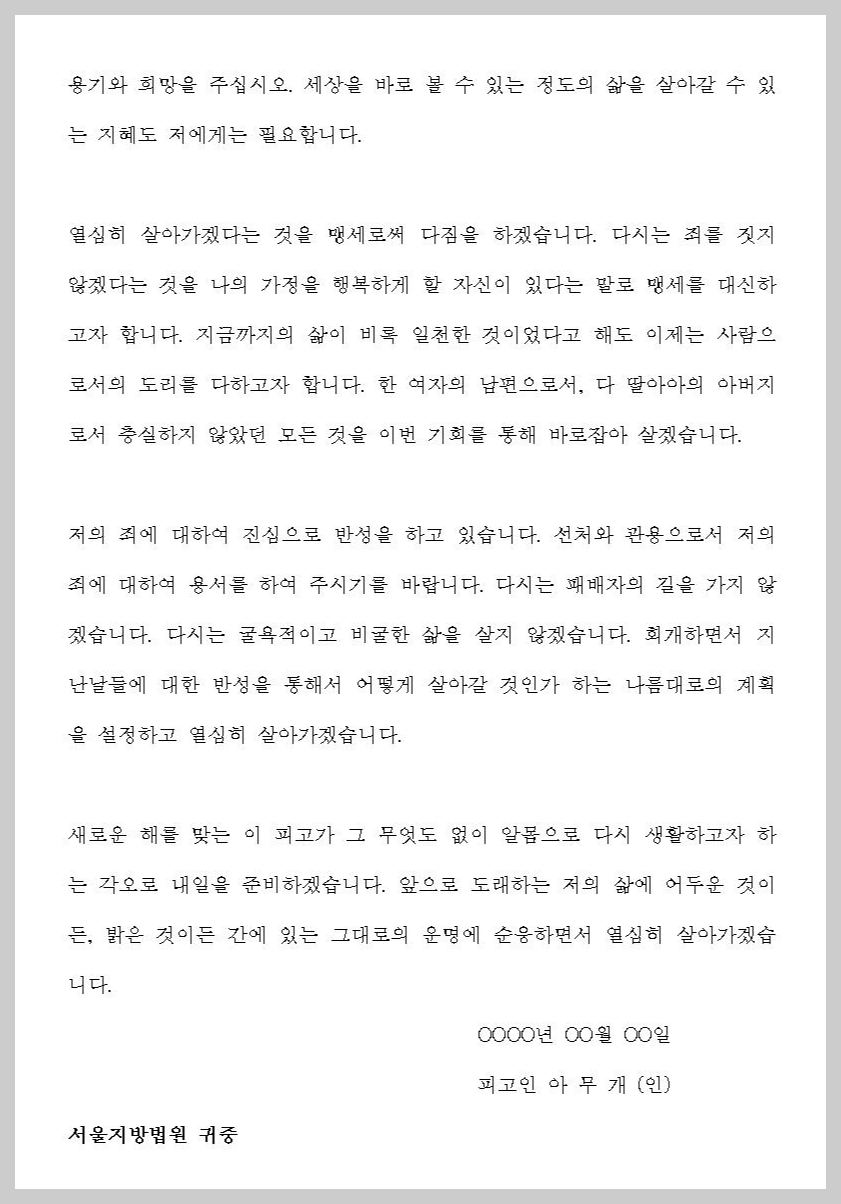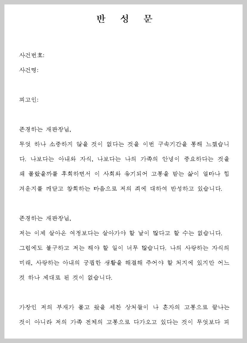 법원에 제출되는 반성문은 공식적인 문서 입니다.
