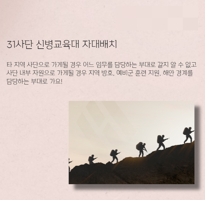 31사단의 경우 자대배치는 2개로 구분 되는데요.