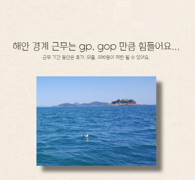 <해안 경계> 업무가 가장 힘들다고 합니다.