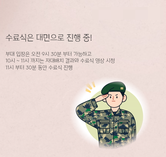 수료식 행사는 약 30분간 진행 하고, 수료식 행사가 종료되면 외출이 가능합니다.