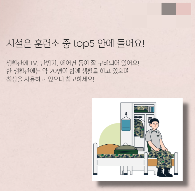 생활관은 훈련소 중에서 Top 5안에 든다고 하니 좋은 시설에 깨끗한 편이고,