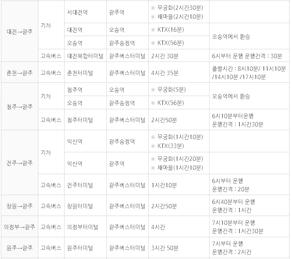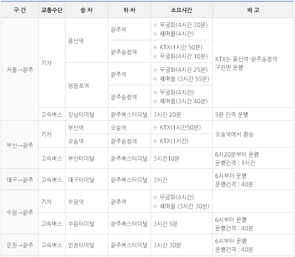 4) 대중교통 수단 안내 (광주버스터미널 까지)