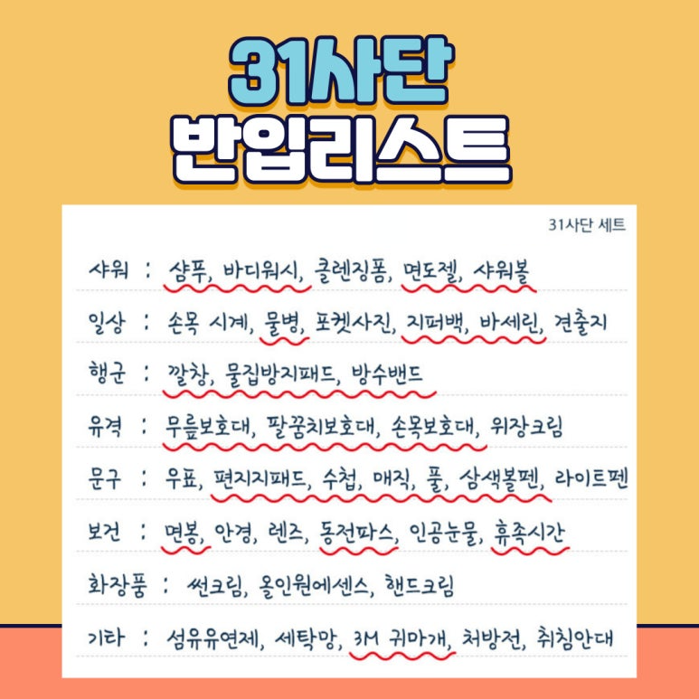 신병교육대 준비물