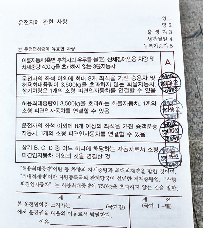 운전면허증 뒷편에 영문으로 운전면허증이 있는 것을 말합니다.