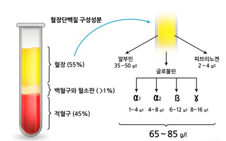 쉽게 말하면 <사람 혈액 속의 수용성 단백질>을 말 합니다.