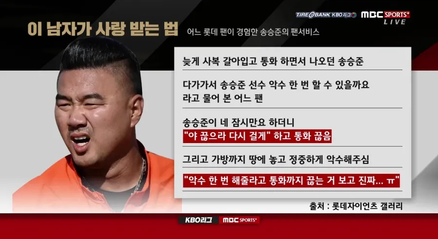 어느 롯데 팬이 경험한 송승준의 팬서비스 라는 글을 보세요.