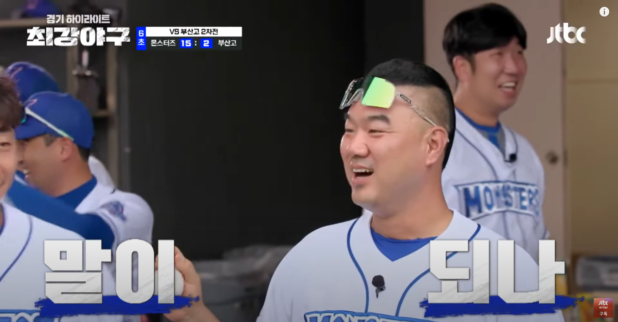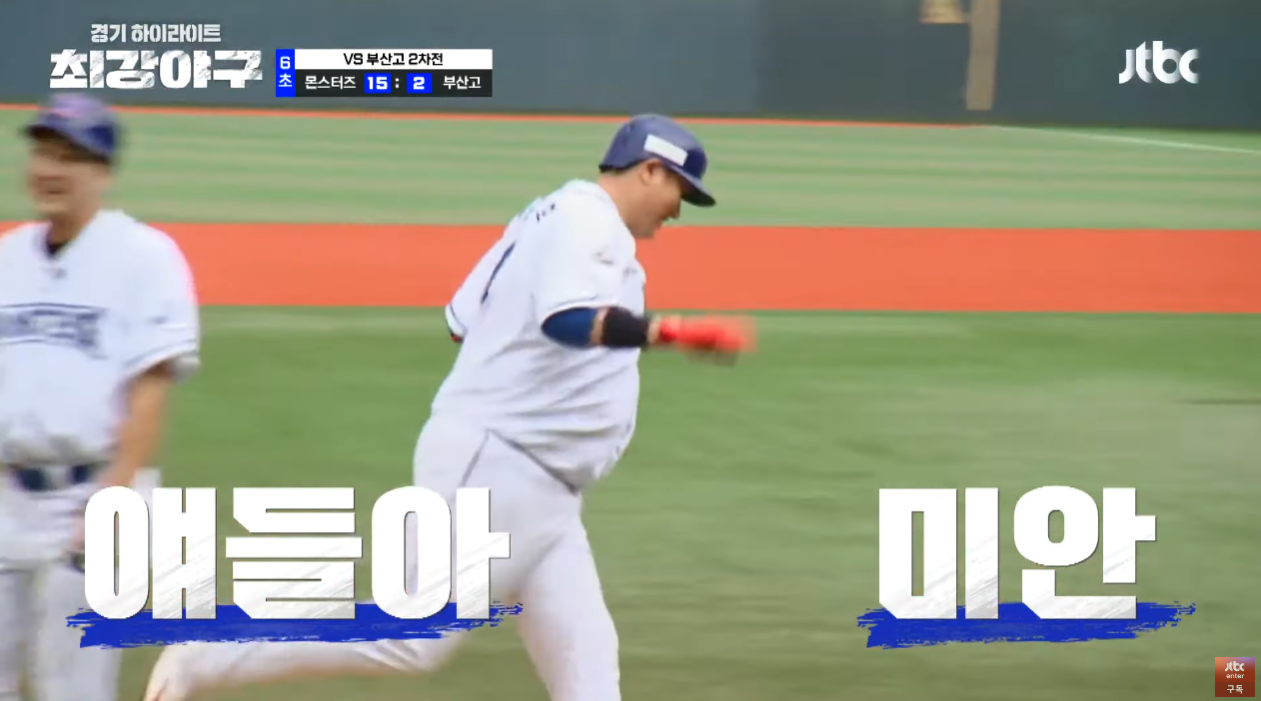 6. 6회, 3연타석 홈런을 날립니다. 투런 홈런, 타석에 들어설때 농담으로 3연타석 홈런을 치겠다고 모든 출연자가 이야기 했는데 농담이 현실이 되었습니다. 투런 홈런으로 3연타석 홈런