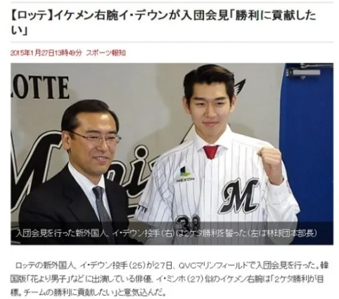 2015년에는 일본프로야구 퍼시픽리그에 치바 롯데 마린즈와 계약하면서 바로 선발투수로 데뷔를 합니다.