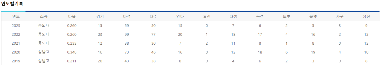 안타수에 비해 삼진수가 높은 수치여서 흔히 말하는 좋은기록의 선수는 아닙니다.