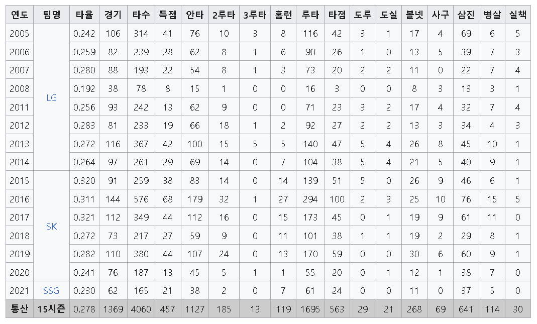 • 소속팀: LG 트윈스 (2005~2015), SK와이번스(SSG랜더스) (2015~2021)