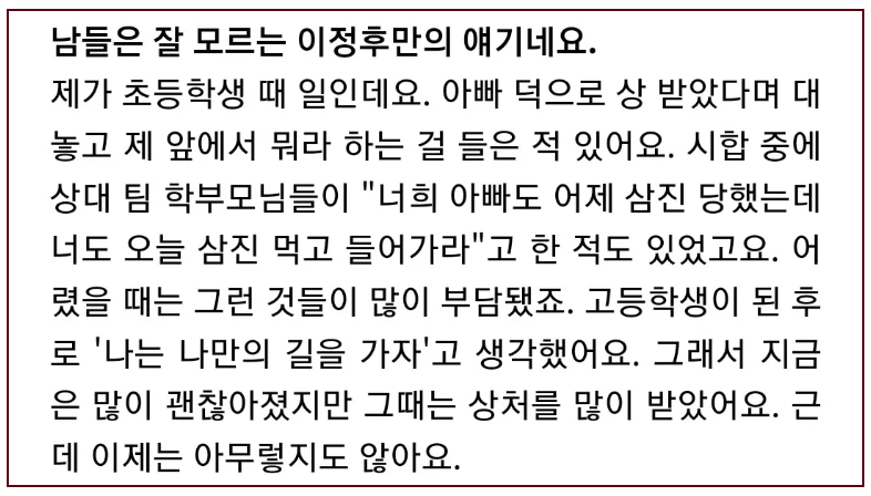 스포츠스타의 2세! 연예인 2세!의 숙명인것이죠.