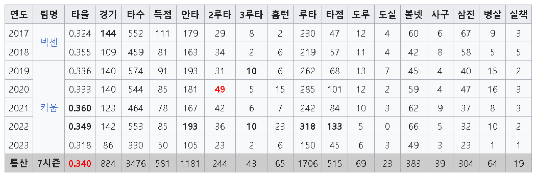KBO에서 이정후 기록은 정말 어마어마 합니다.