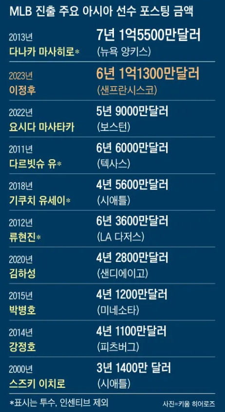 1) 이정후 메이저리그 계약금 및 연봉