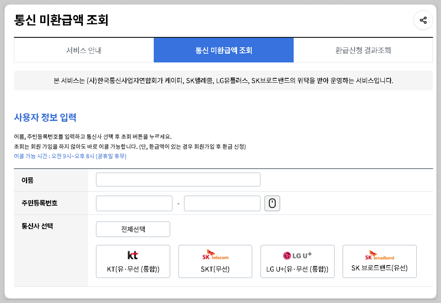 통신 미환급액 조회하기