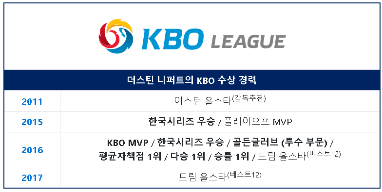 니퍼트 선수가 이룬 업적을 네줄로 요약 하면 아래와 같습니다.